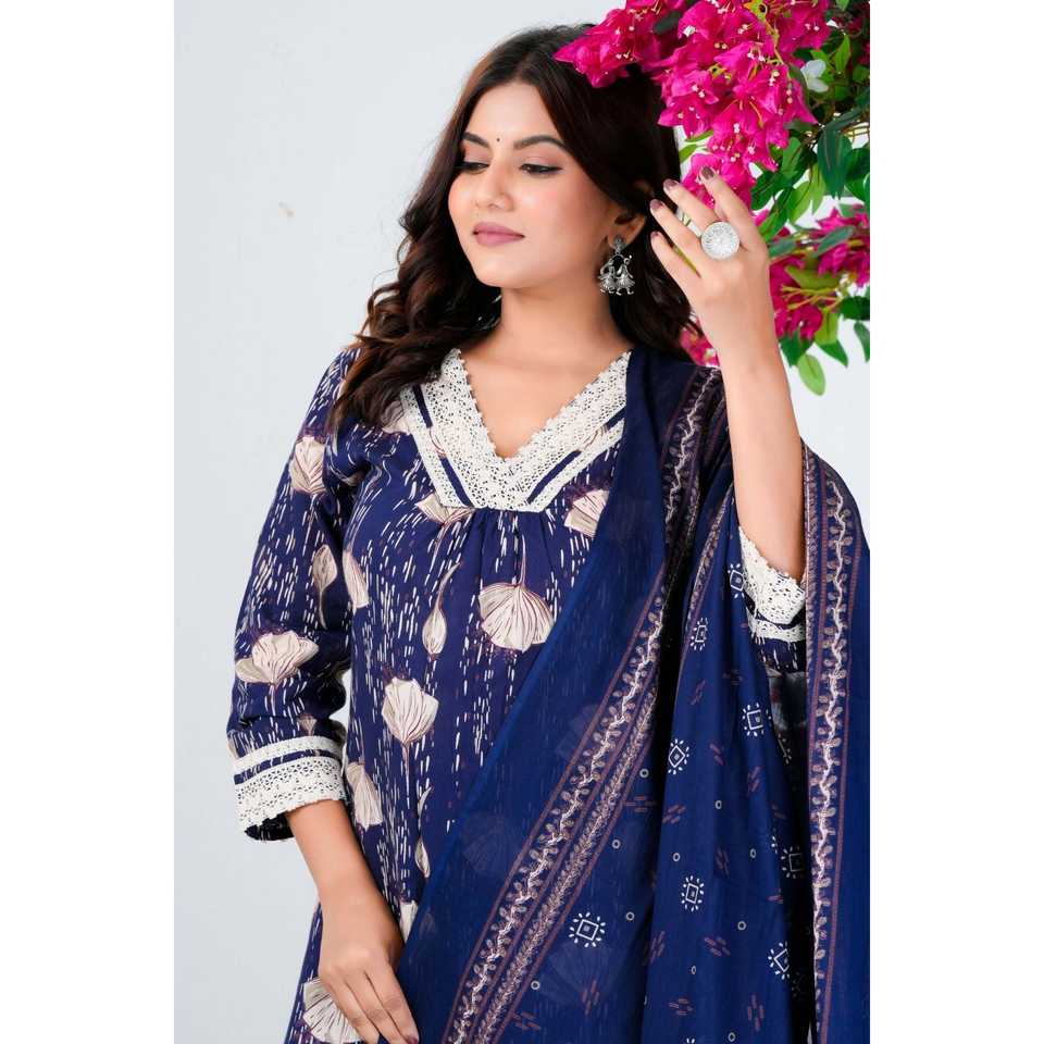 Dupatta:Coordinated navy blue dupatta with traditional patterns