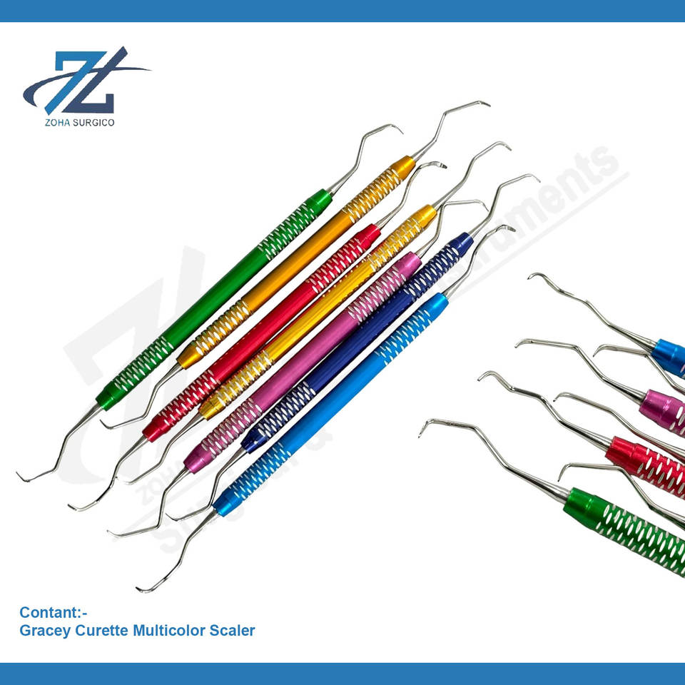Gracey Curette Multicolor Stainless Steel Manual 7PC Dental Scaler Set Periodontal Instruments High Quality CE Certified Class I