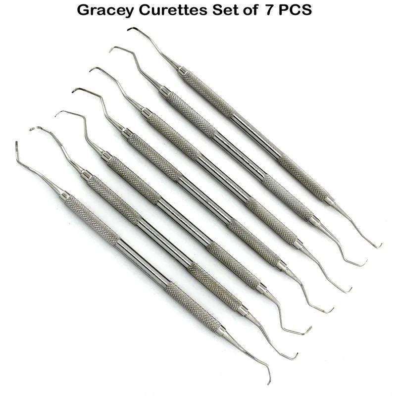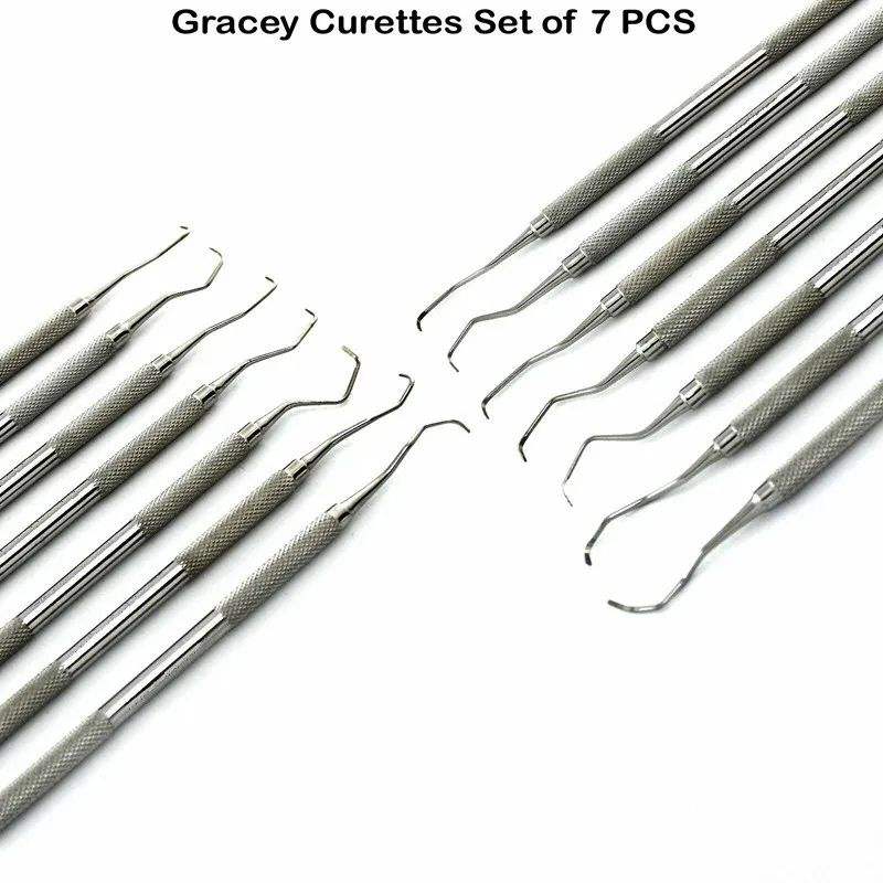 Ensemble d'instruments chirurgicaux dentaires manuels Gracey, 7 curettes parodontales en acier inoxydable pour le calcul dentaire, certifiées CE Classe I, rembourrées