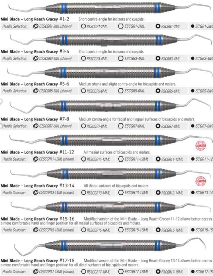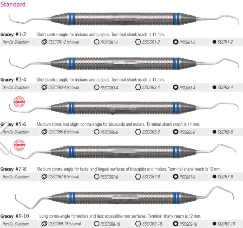 Source d'alimentation manuelle d'instruments chirurgicaux dentaires rigides longs standard de Gracey