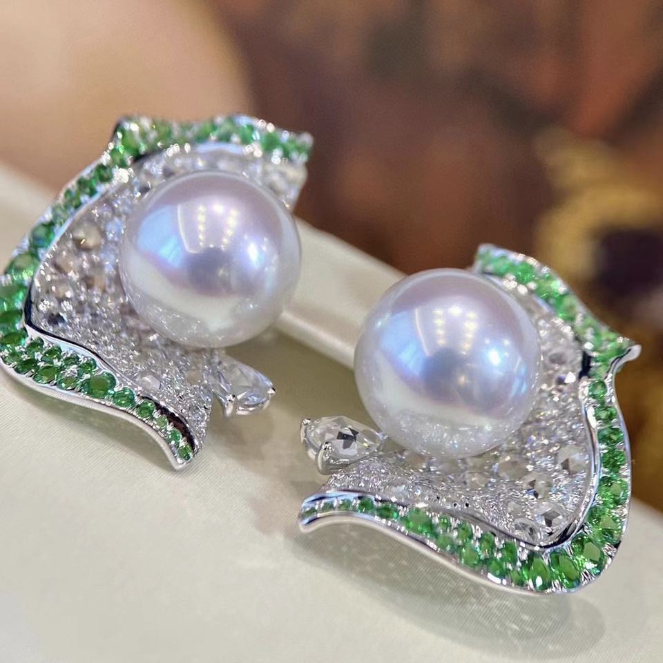 Grade 11-12MM Flawless Platinum Gray Small Steel Ball Ocean Blue Natural Pearl Earrings with Round Holes Inclusive Gift Box