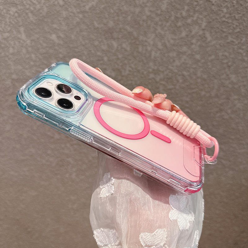Dégradé 3 en 1 Anti Jaune Couverture de Téléphone Transparent Tpu Forte Magnétique Téléphone étui pour Iphone 17 16 15 14 Promax Avec Dragonne