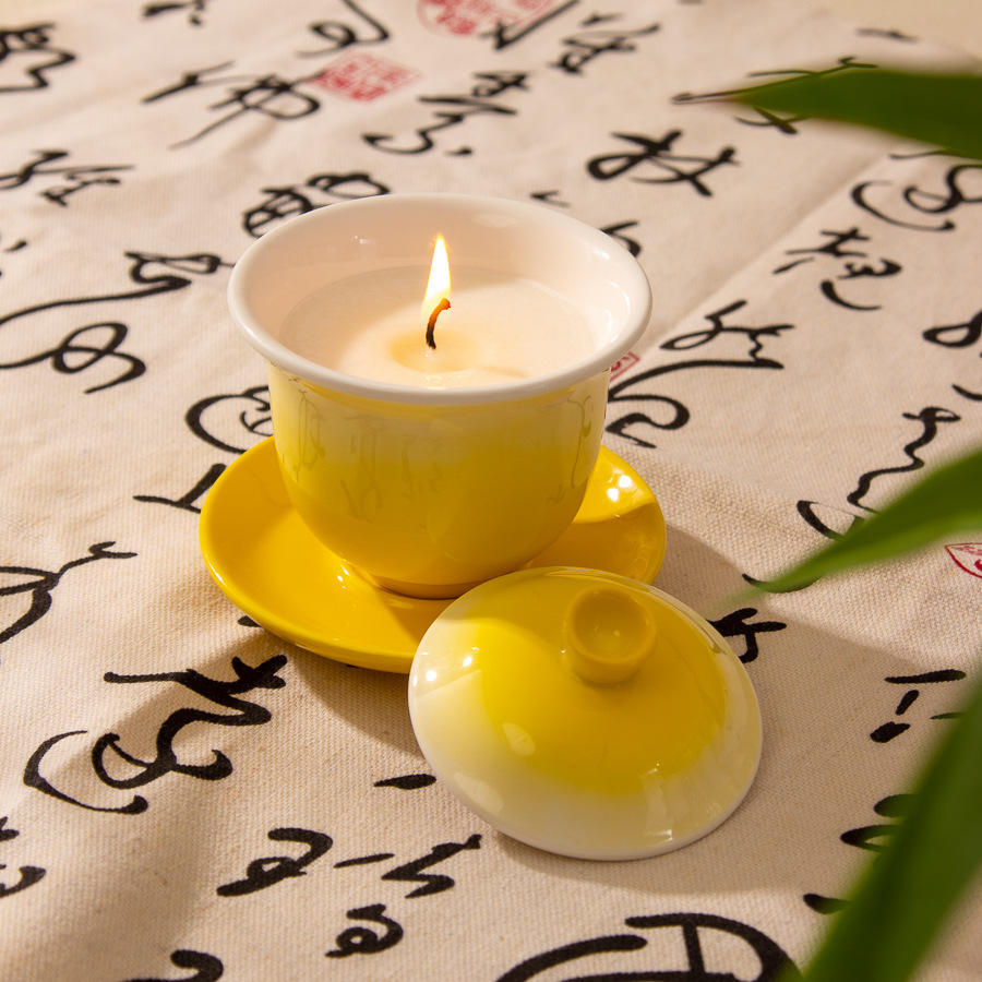 Porte-bougie en céramique dégradé 145 ml avec couvercle et soucoupe pour la décoration de la maison
