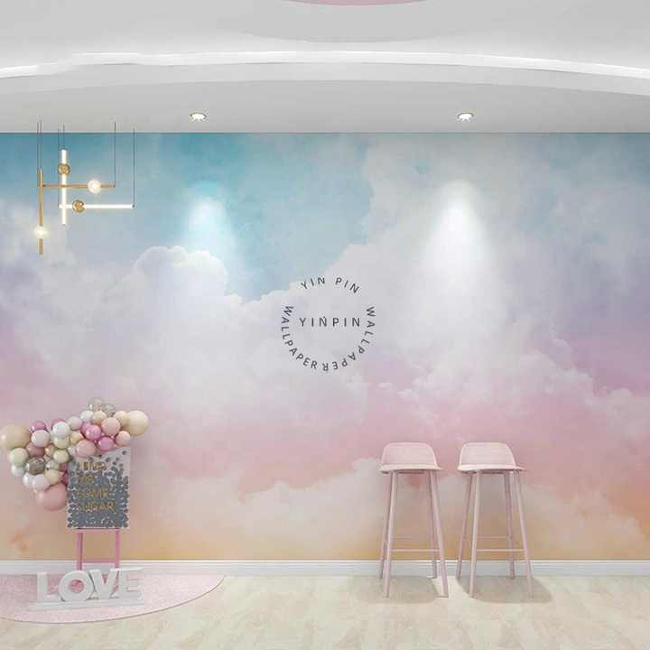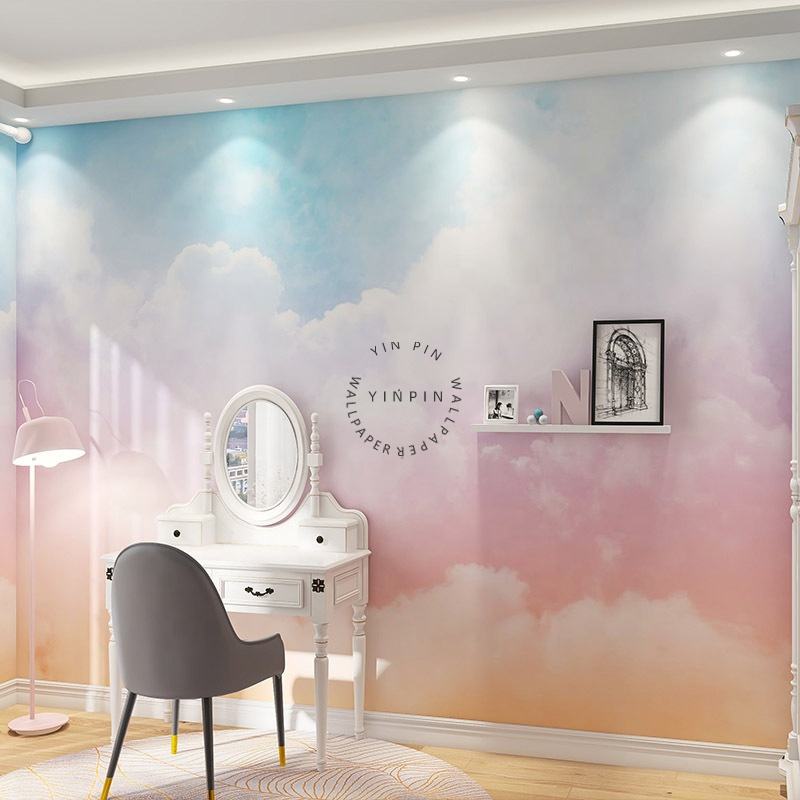 Papier peint mural auto-adhésif pour chambre d'enfant avec motif nuage dégradé