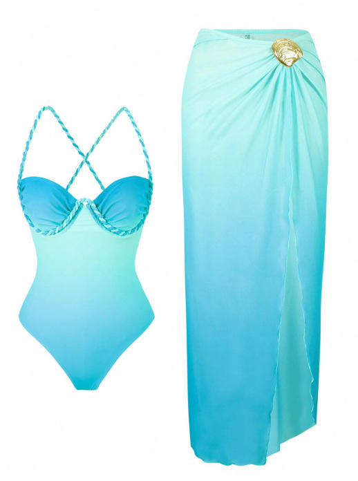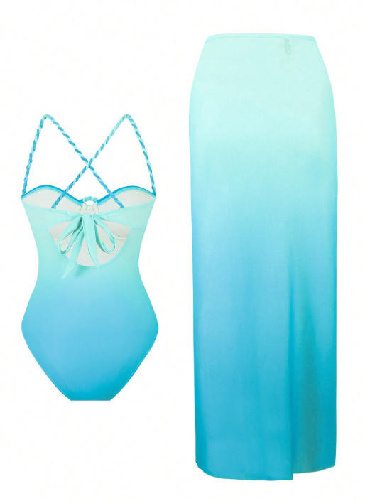 Robe de plage en tissu dégradé de couleur, maillot de bain une pièce, vêtements de bain de luxe pour femmes