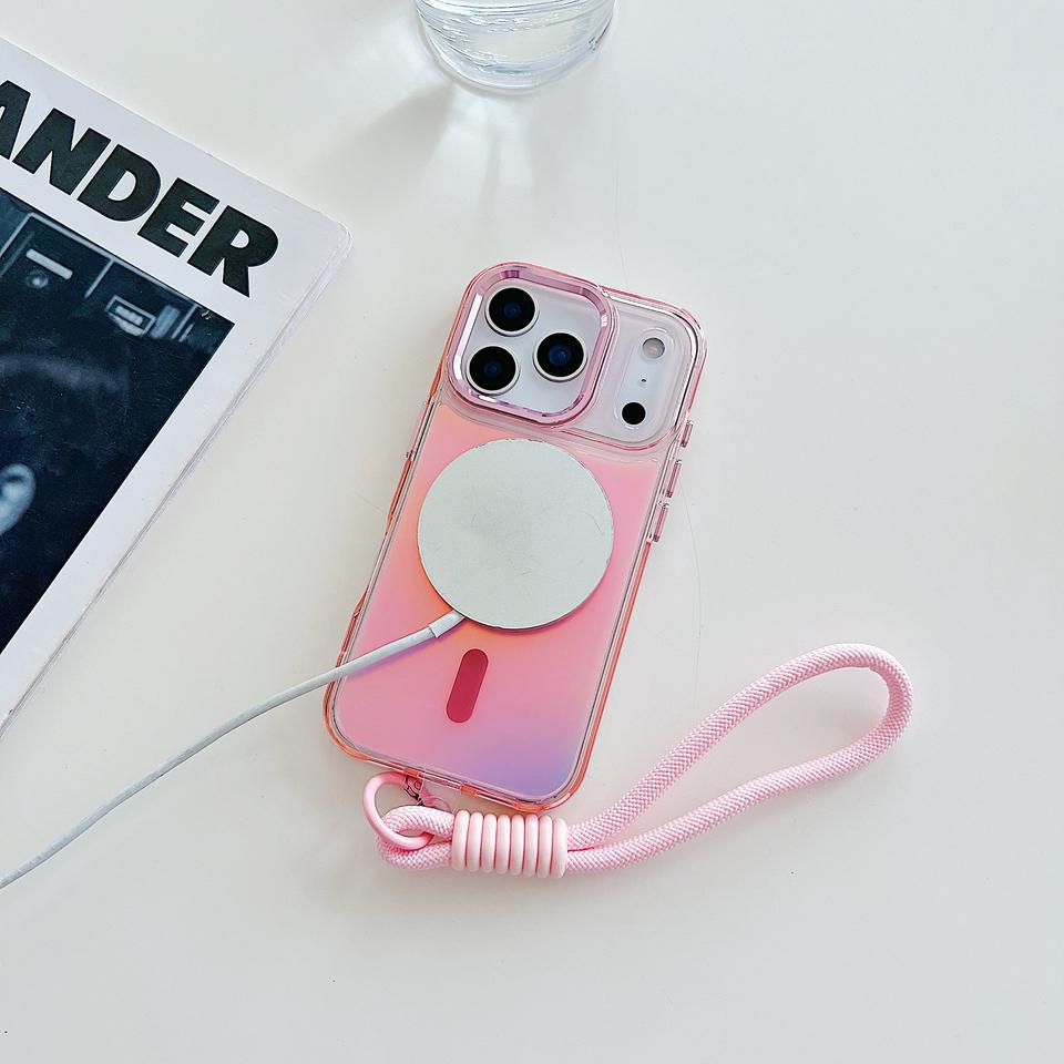 Étui à bracelet magnétique transparent dégradé pour iPhone Air 16 15 14 13 12 11 17 Pro Max avec recharge sans fil