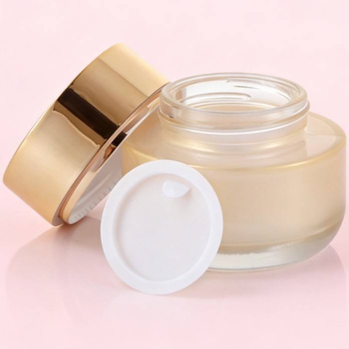 Crème dorée dégradée 50g en pot de verre avec bouchon doré, hydratant pour le visage