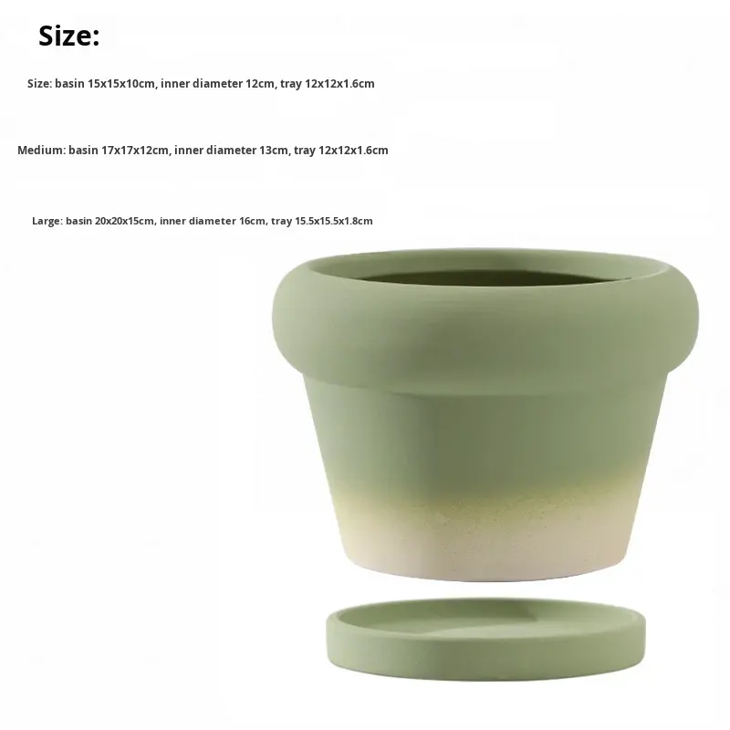 Pot de fleurs en céramique vert olive dégradé, respirant, absorbant l'eau, avec plateau de contrôle des racines, design élégant pour la plantation