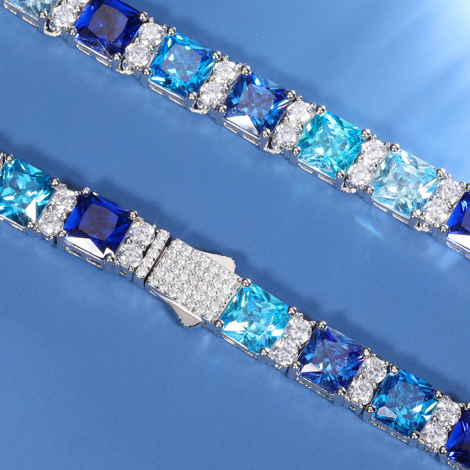 Gradient Style Party Jewelry Luxury 925 Sterling Silver Princess Cut Coloré AAAAA CZ Diamond Cluster Tennis Chain Necklace