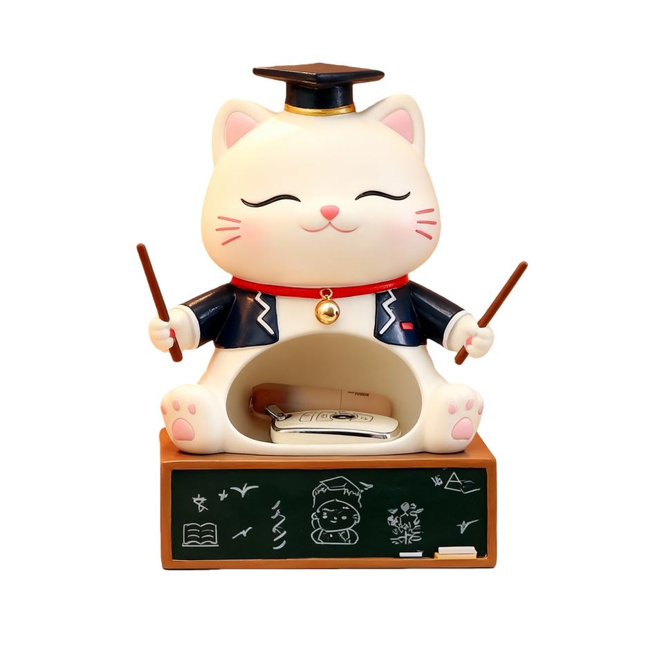 Statue de chat professeur diplômé - Figurine artisanale en polyrésine personnalisée pour le rangement amusant sur le bureau et à l'entrée, idéale pour ranger les clés et les bibelots