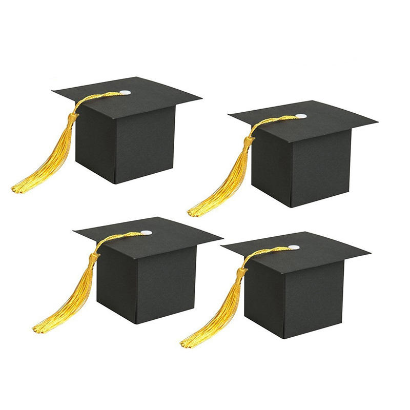 Boîte à bonbons carrée de remise de diplôme, boîte cadeau en forme de chapeau de docteur avec pompon, prix d'usine très vendu pour la cérémonie de remise de diplôme