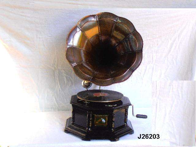 Gramophone avec Base en bois et corne en laiton peint, 100 cm, décor de maison, réplique Antique