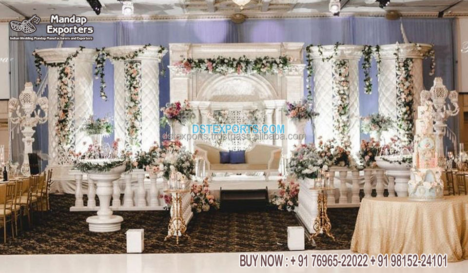 Décor de scène de réception du Grand hotel, décor de scène de réception de mariage de badminton, finition blanche du palais Royal