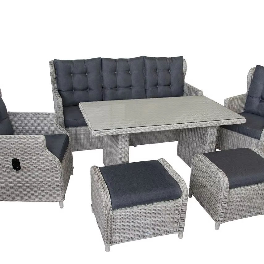 Ensemble de canapés Grand Patio en osier, 7 pièces, ensemble de meubles rétro pour l'extérieur, résistant aux intempéries, revêtement en poudre
