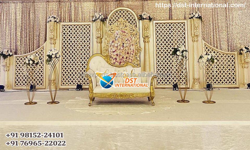 Grand panneau de cadre arrière de scène à thème Rajwada scène à thème sud-indien pour mariages indiens scène de cérémonie de bague de mariage sud