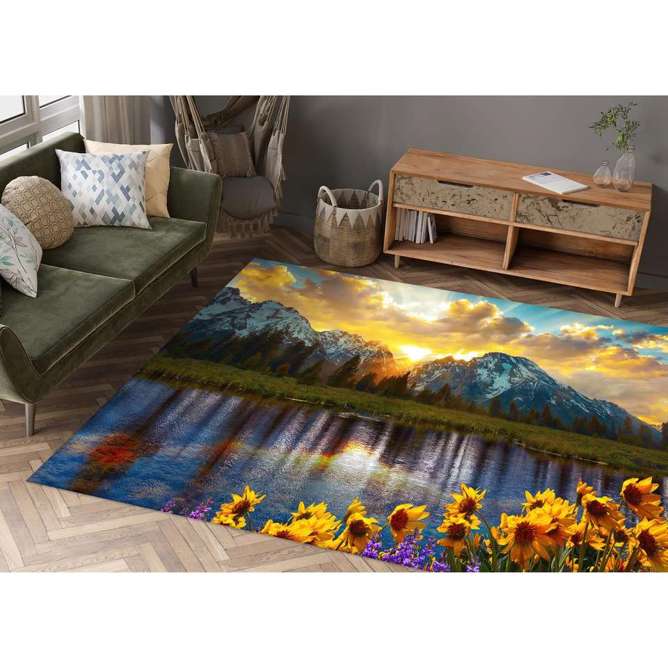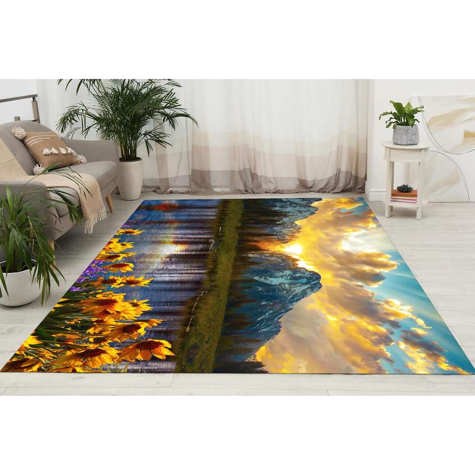 Tapis Grand Teton Park, tapis imprimé, fleur, tournesol, paysage, coucher de soleil, avec tapis moelleux à poils longs