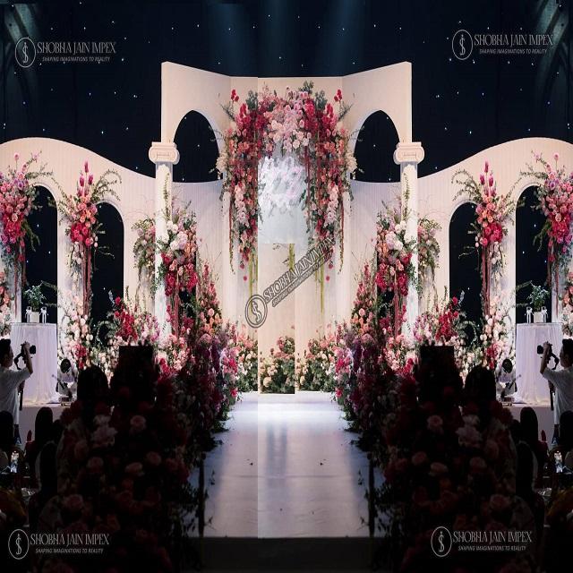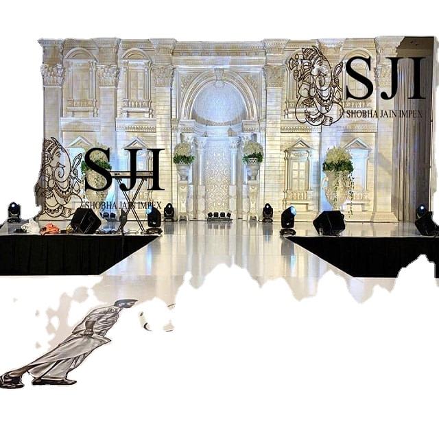 Décoration de scène de réception de mariage en bois de grande taille par Shobha Jain Impex, fabriquée à Delhi, Inde, pour mariage moderne, scène moderne, prix de gros