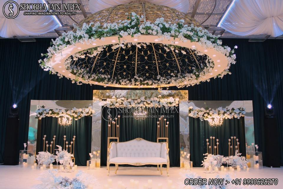 Décoration de scène de réception blanche et bleue glacée sur le thème western avec motifs floraux, en plastique renforcé de fibres, par Shobha Jain Impex