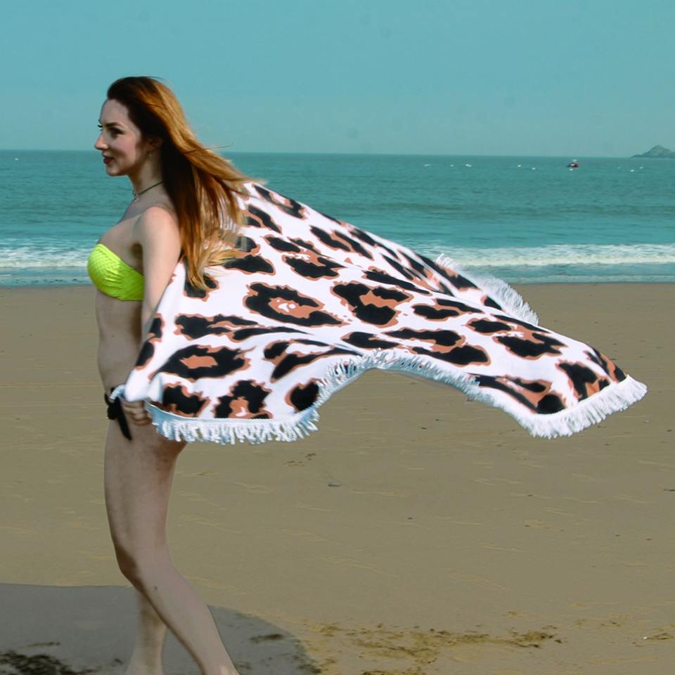 Large round beach towel with personalized leopard print tassel summer Women sandy swimming sunbath blanket