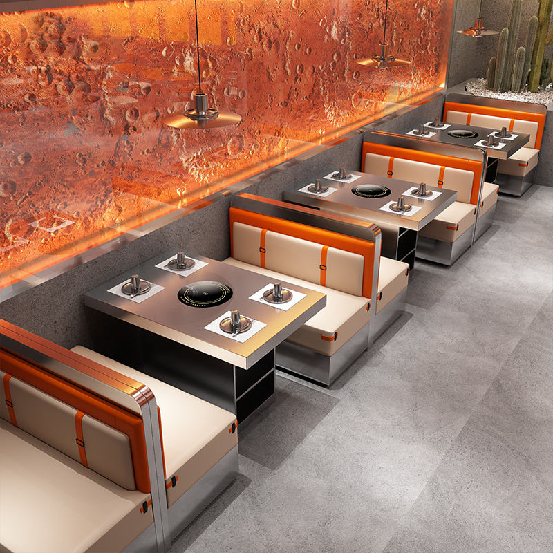 Table de restaurant en granit et marbre avec plaque de cuisson intégrée, table de barbecue coréen sans fumée à gaz commercial et chaises