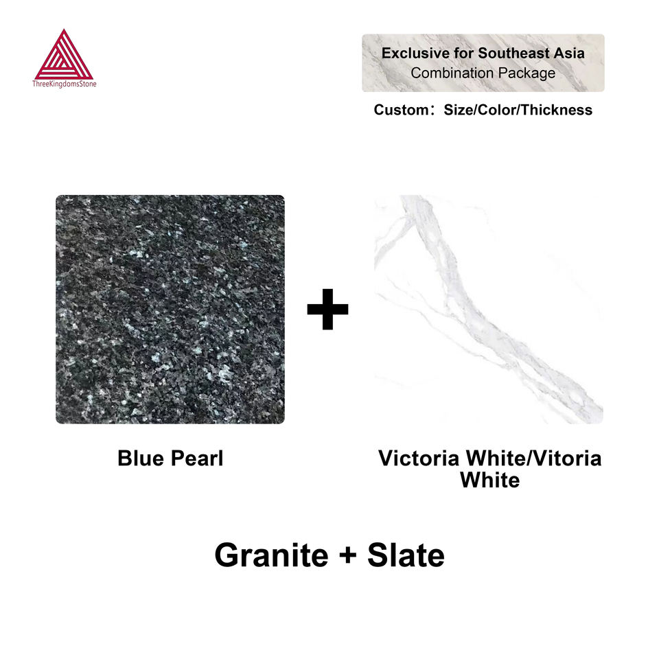 Lot de pierres à prix réduit en granit et quartz, dalle de granit Blue Pearl pour contour de cheminée et mur d'accentuation