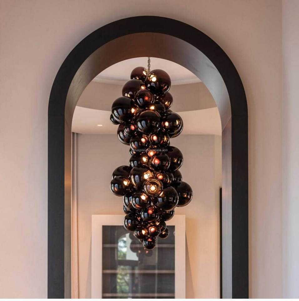 Lustre en verre de forme de grappe de raisin pour restaurant, escalier vide, club design, villa, hôtel