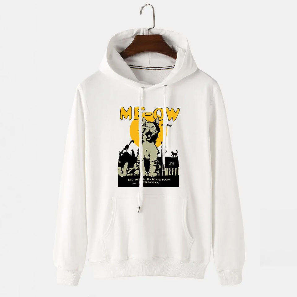 Graphic Lined Knitted Hoodie Cute Cat Print Soft Casual Pullover Sweatshirt Comfortable Daily Wear Street Style Trendy Mens