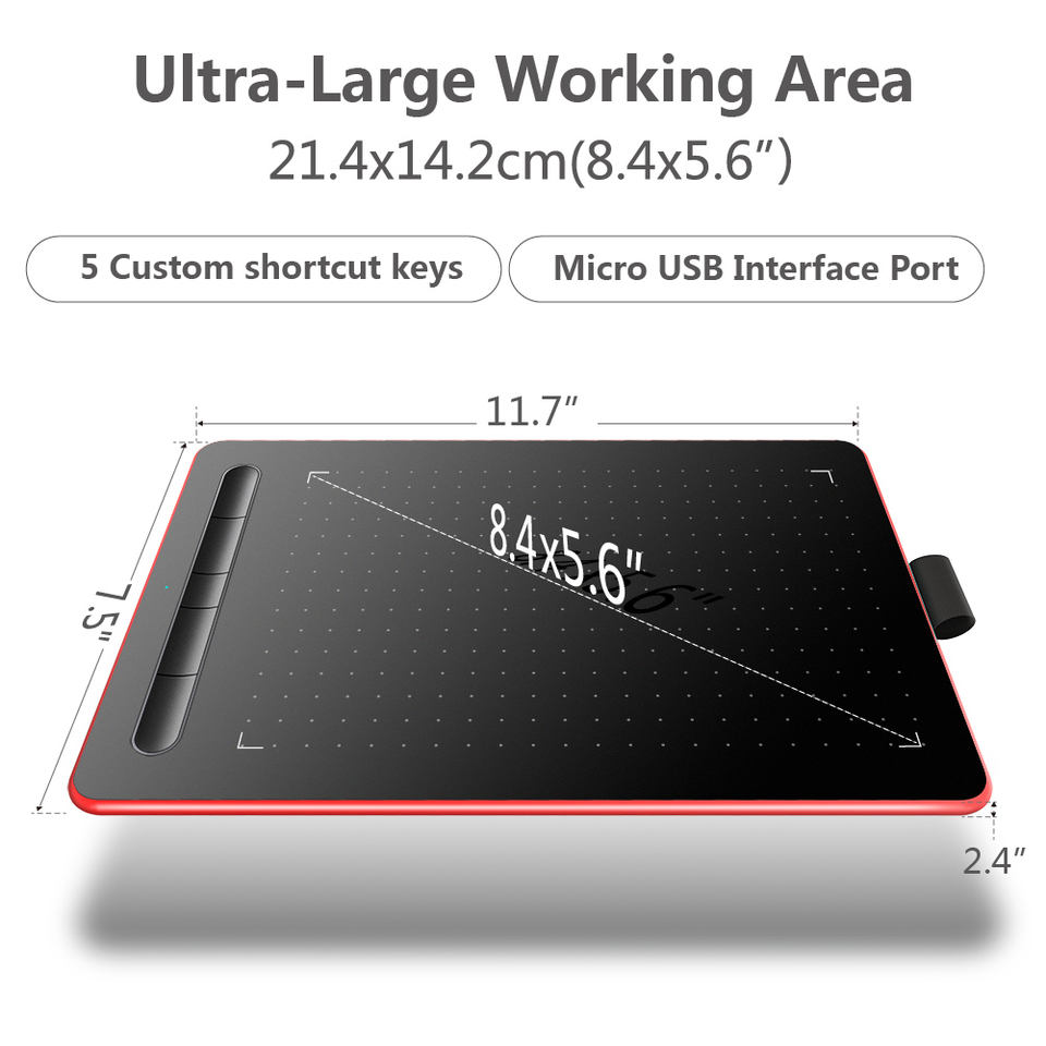 Touches de pression:5 keys on the tablet and 2 keys on the pen
