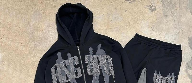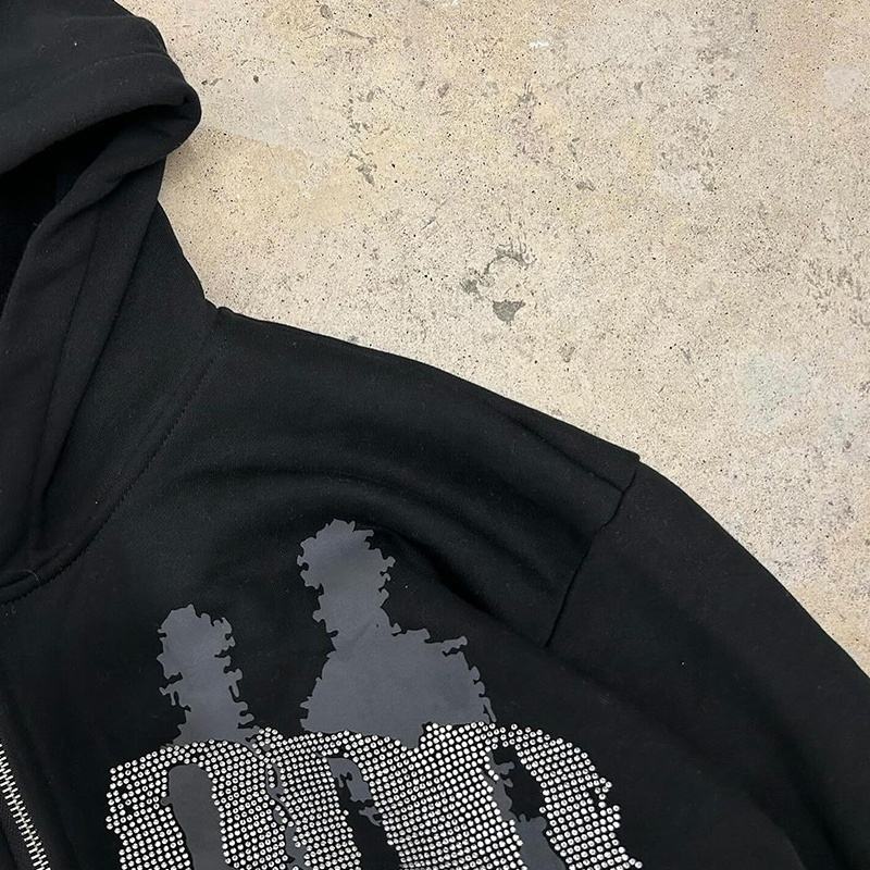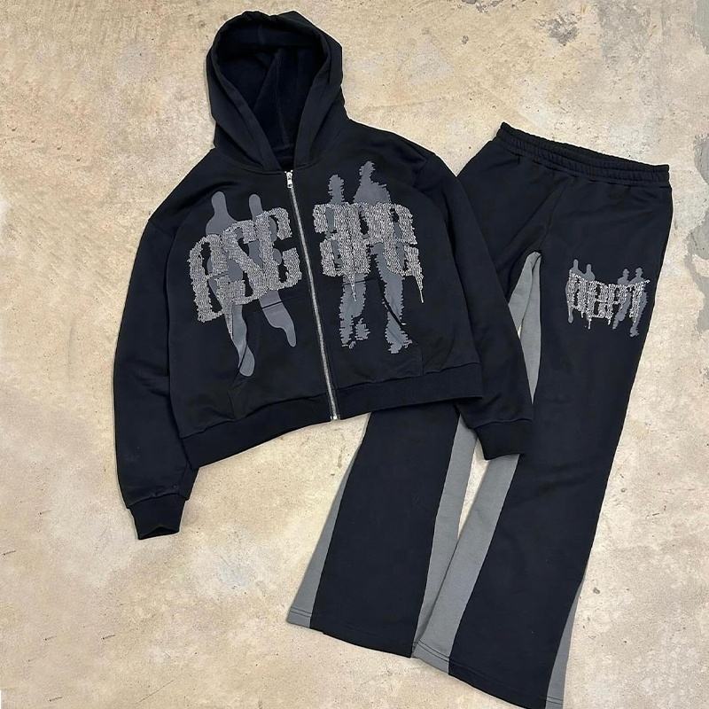 Ensemble de survêtement pour homme à imprimé graphique 2 pièces, sweat à capuche zippé avec strass, pantalon de survêtement évasé et jogging pour homme et femme