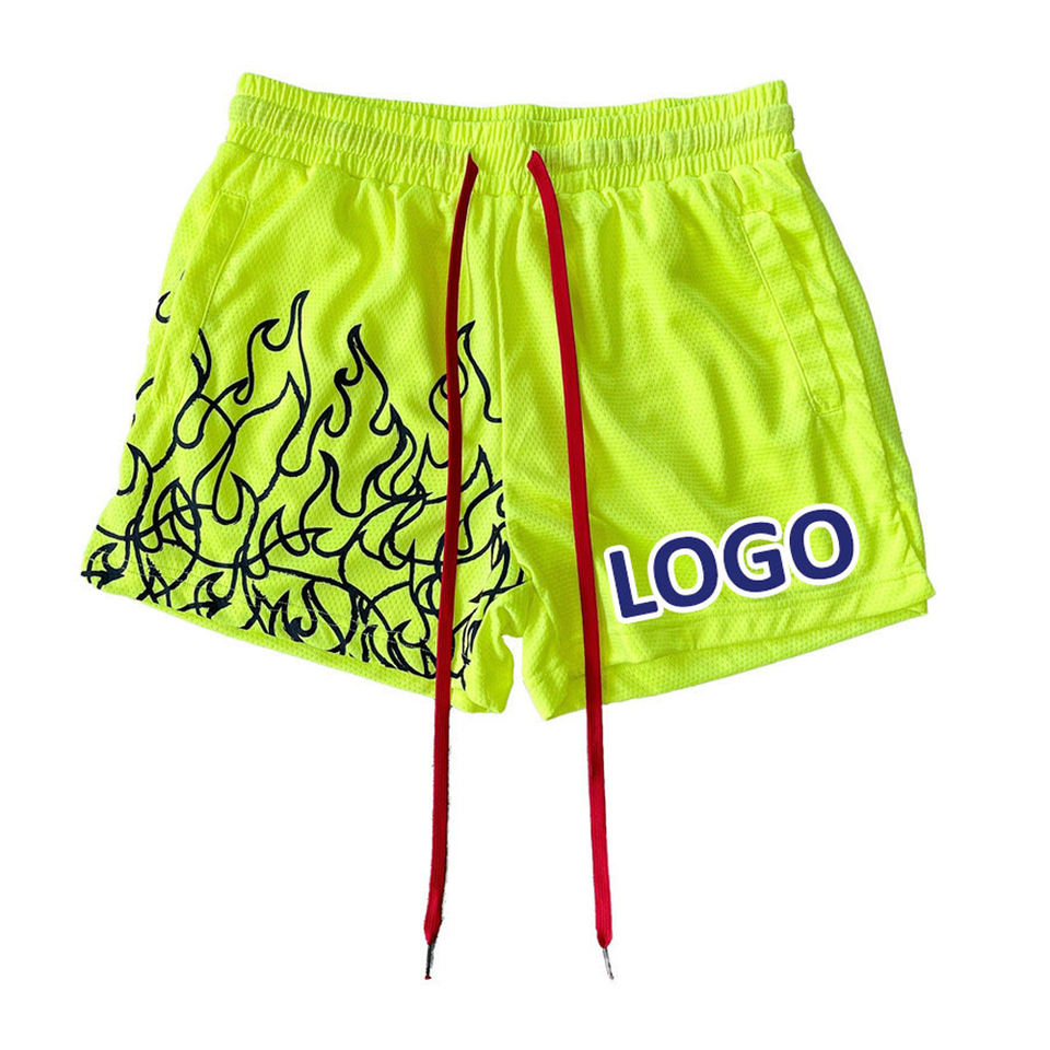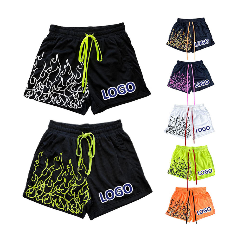 Shorts décontractés pour hommes style streetwear graphique, légers, d'été, avec cordon de serrage à la taille, motif flamme, 100 % polyester, sur mesure