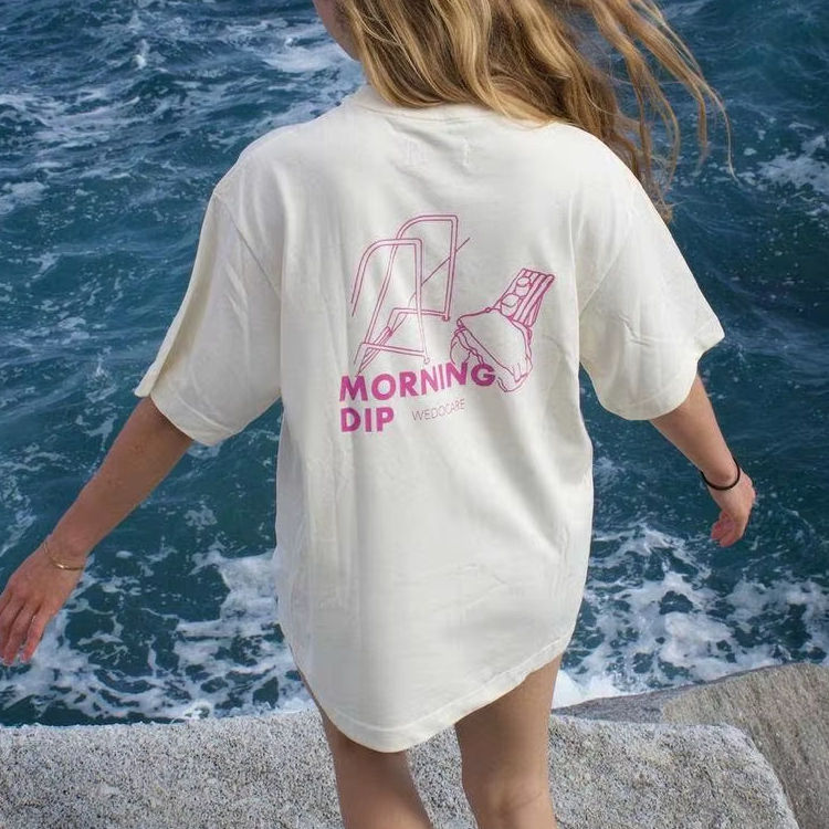 T-shirt graphique inspiré de la plage, coupe décontractée et douce, pour les amateurs de style décontracté quotidien à la recherche d'une énergie estivale fraîche