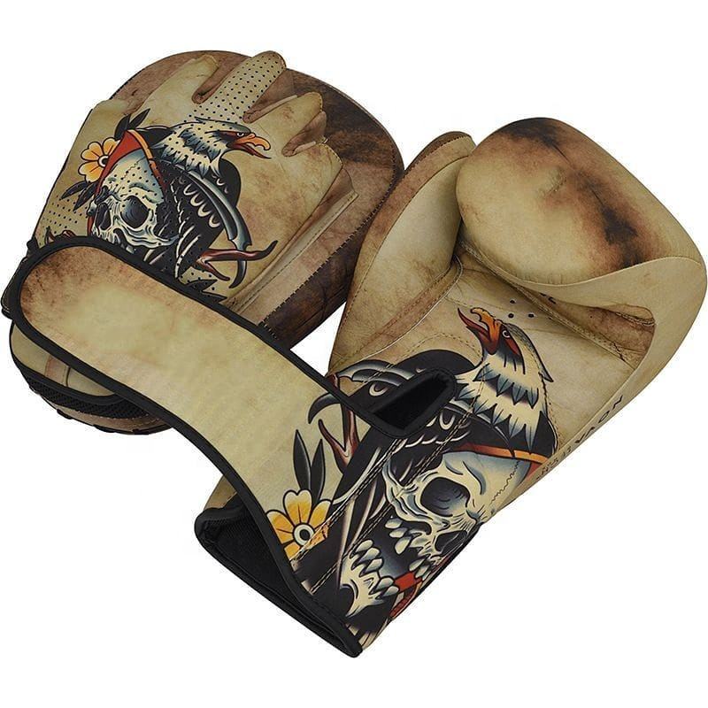Gants de boxe en cuir de vachette imprimés graphiques avec fixation à crochet et boucle pour l'entraînement aux arts martiaux et l'utilisation en salle de sport