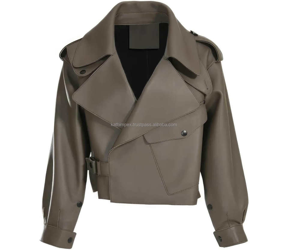 Graphite Crossover surdimensionné revers col cavalier automne printemps rue lâche en cuir lisse vestes pour femmes
