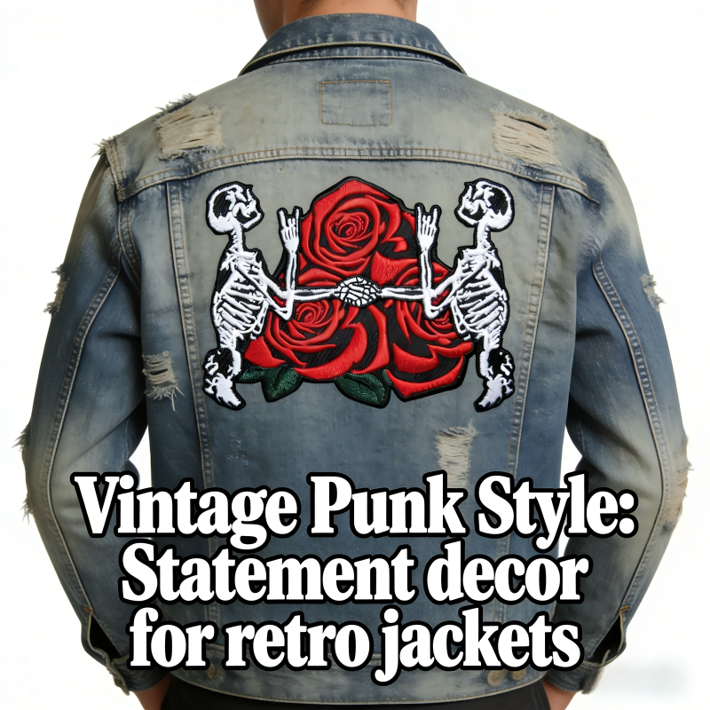 Appliques brodées en chenille écologiques, motif roses squelettes inspirées des Grateful Dead, à thermocoller/coudre pour vestes en jean et chapeaux