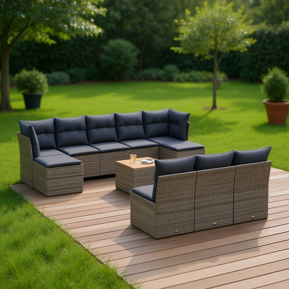 Ensemble de canapés de jardin en rotin gris et brun 6 places, résistant aux intempéries, mobilier d'extérieur au design contemporain