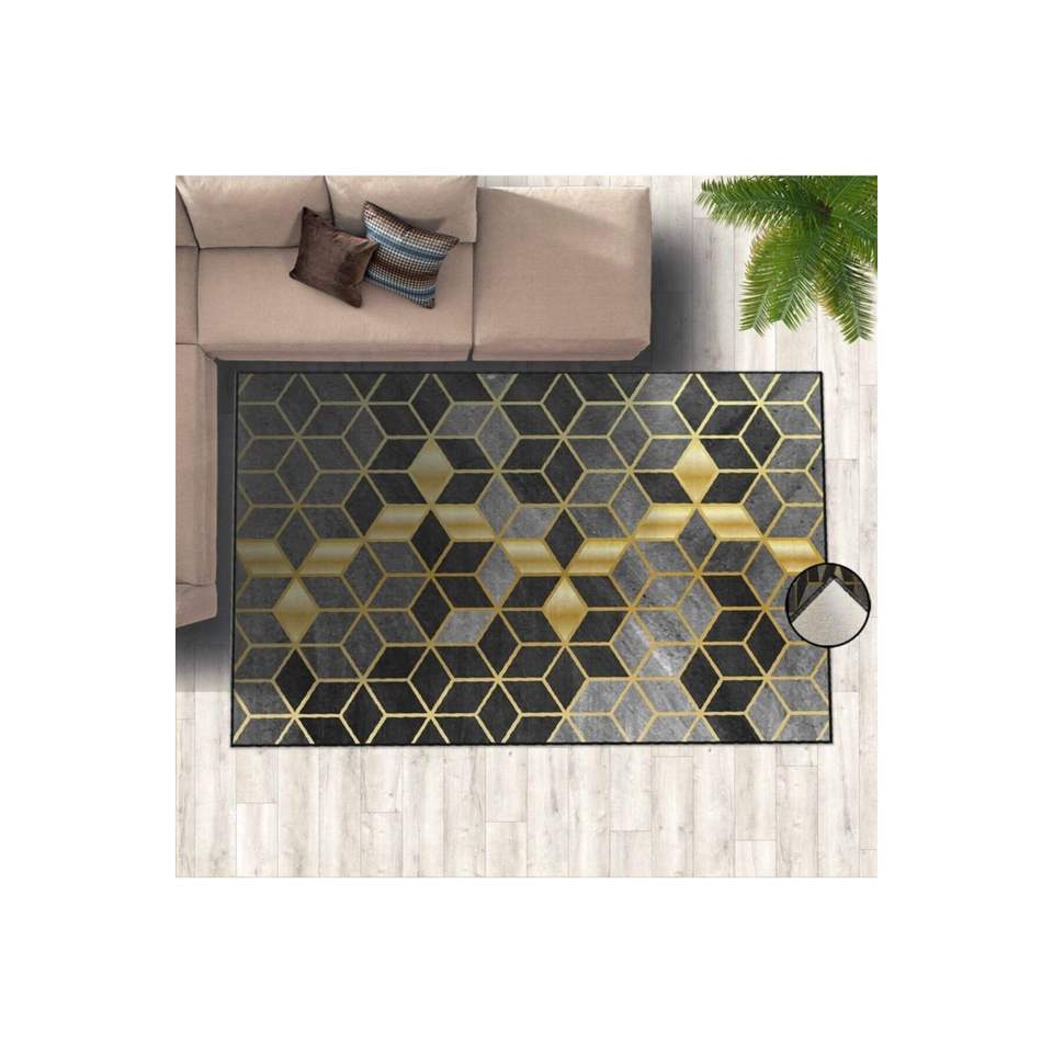 Tapis et ensembles de tapis imprimés numériques détaillés en nid d'abeille gris noir et or