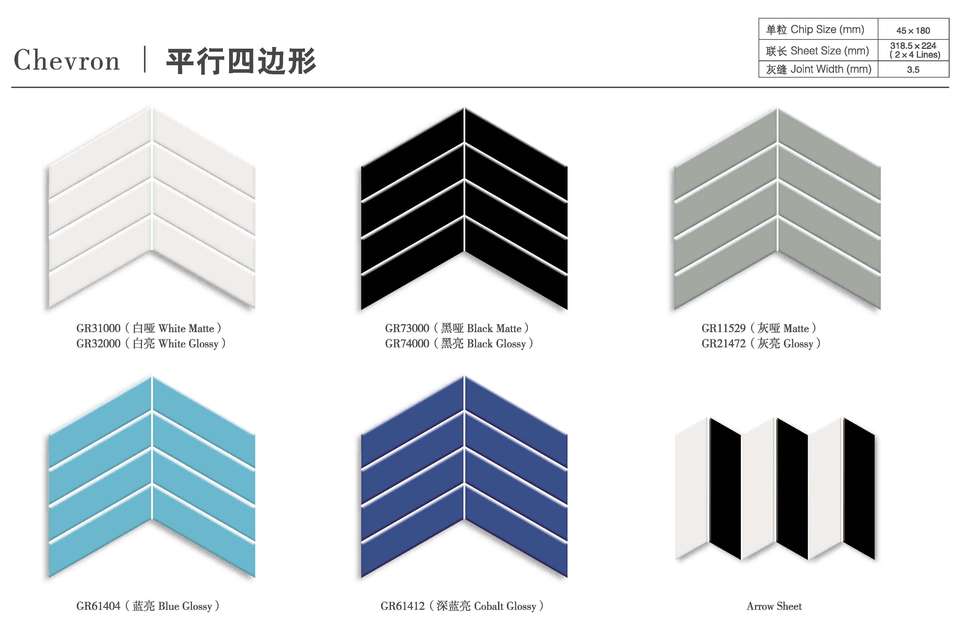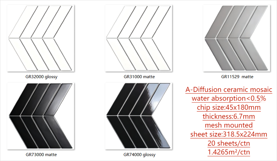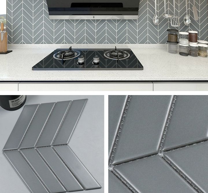 Mosaïque de carreaux de céramique en porcelaine décorative pour mur intérieur, dosseret de cuisine, gris, chevron, mat, glacé, 318,5x224 mm