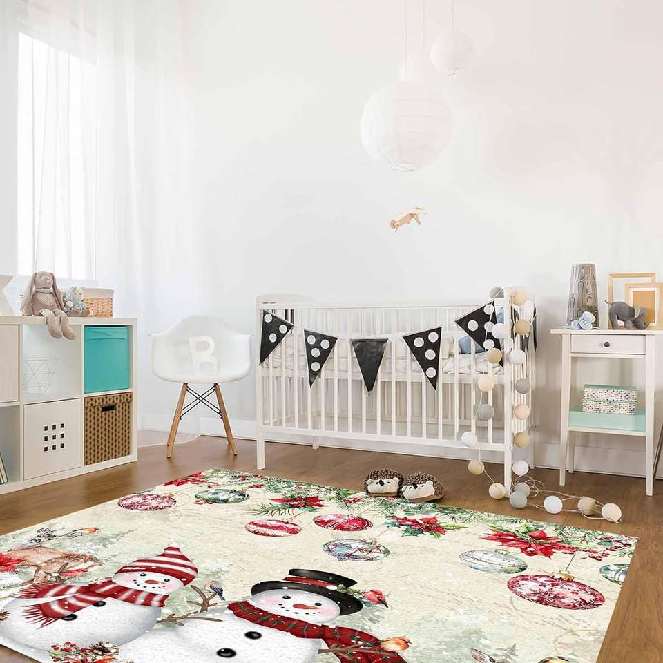Bonhomme de neige de Noël gris boule d'arbre wapiti et poinsettia tapis absorbant antidérapant décor à la maison Stock pour chambre et salon