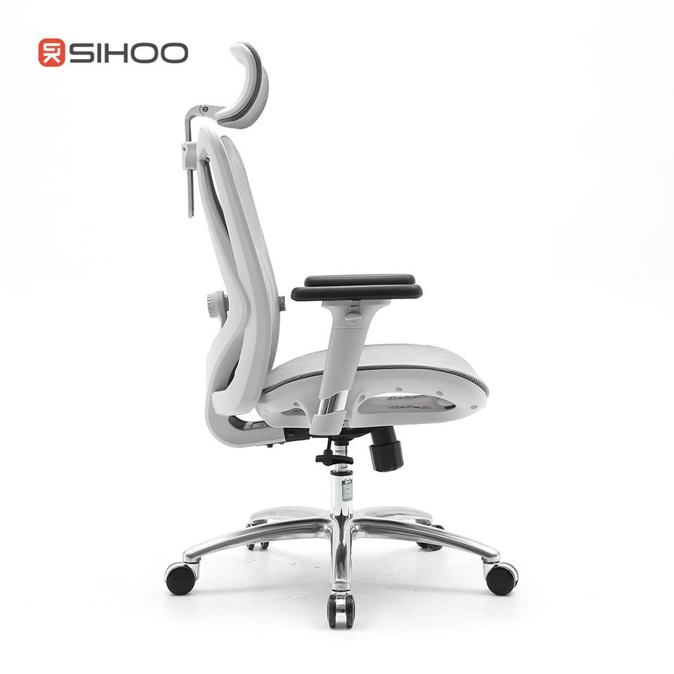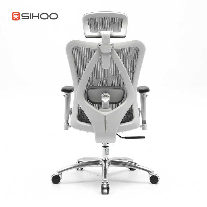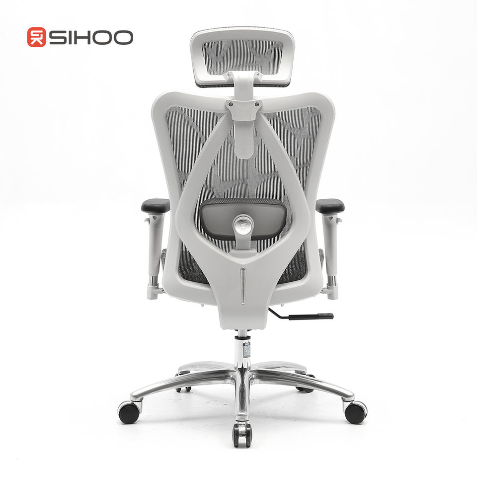 Chaise de bureau Sihoo M57 de couleur grise, entièrement en maille, ergonomique, avec repose-pieds, conforme à la norme BIFMA