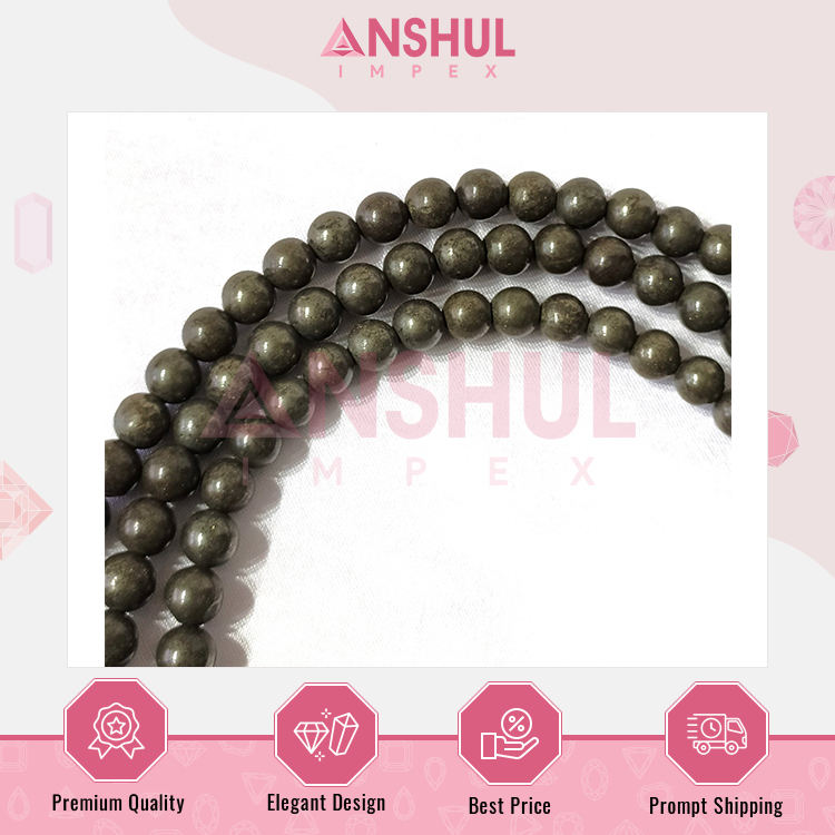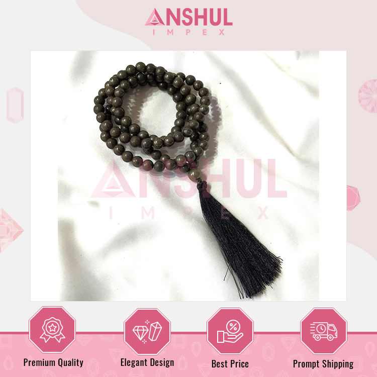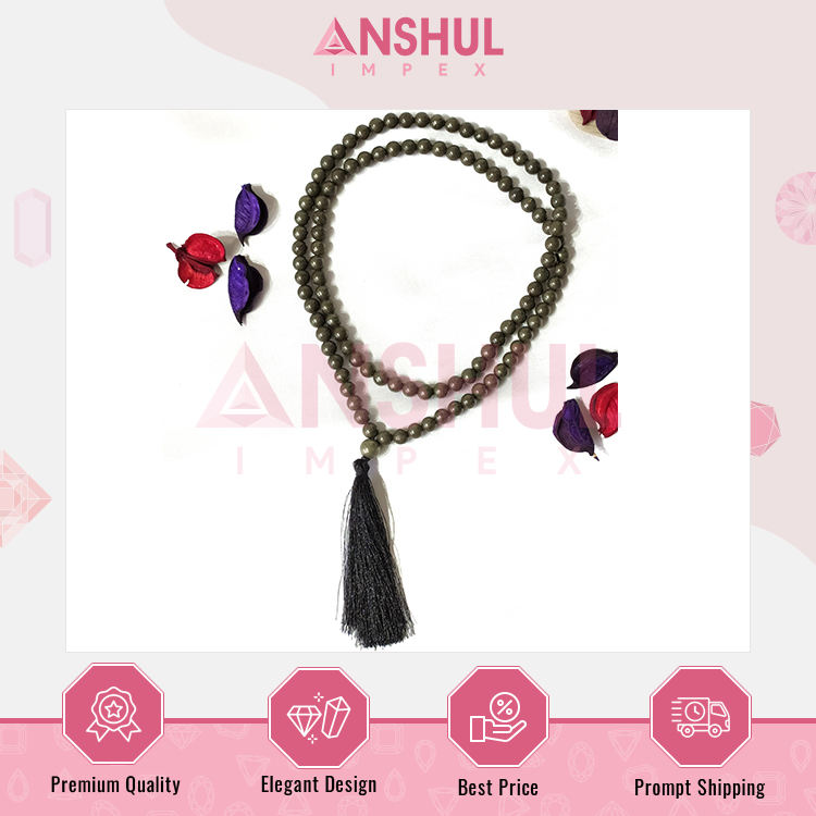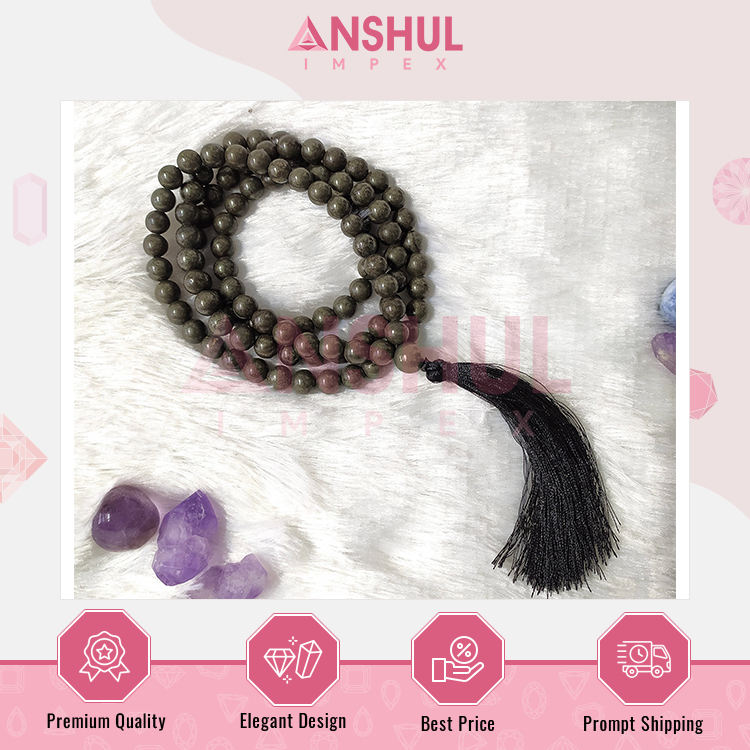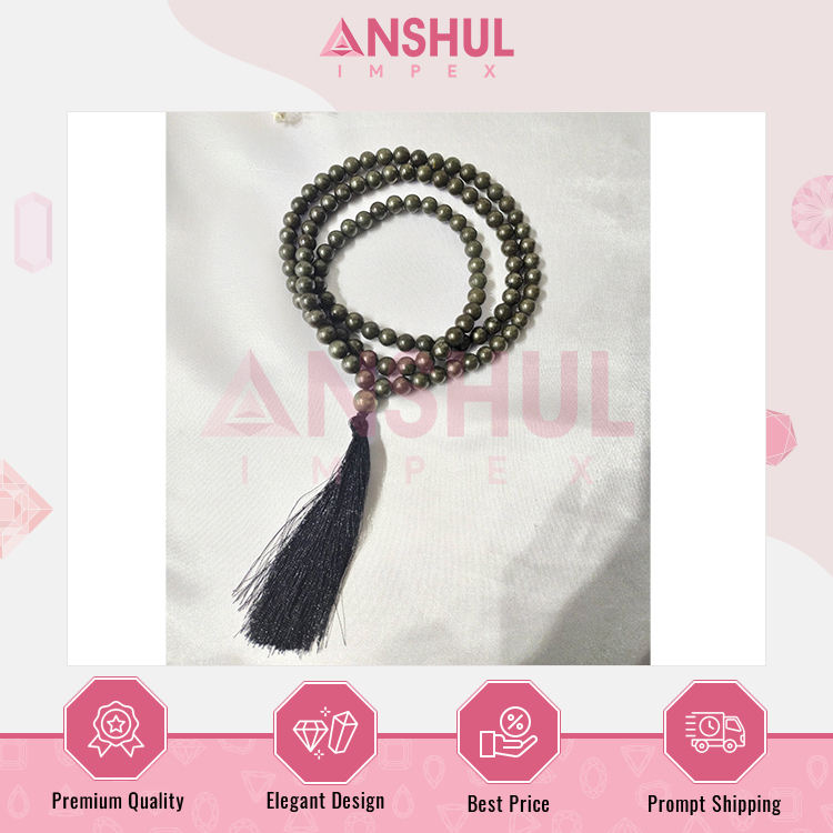 Product Name:8mm, Pyrite Gemstone Mala, 108 Prayer Beads Jap Mala