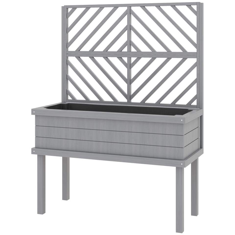 Jardinière surélevée en bois gris avec treillis pour plantes grimpantes Lit de jardin surélevé avec pattes et trous de drainage