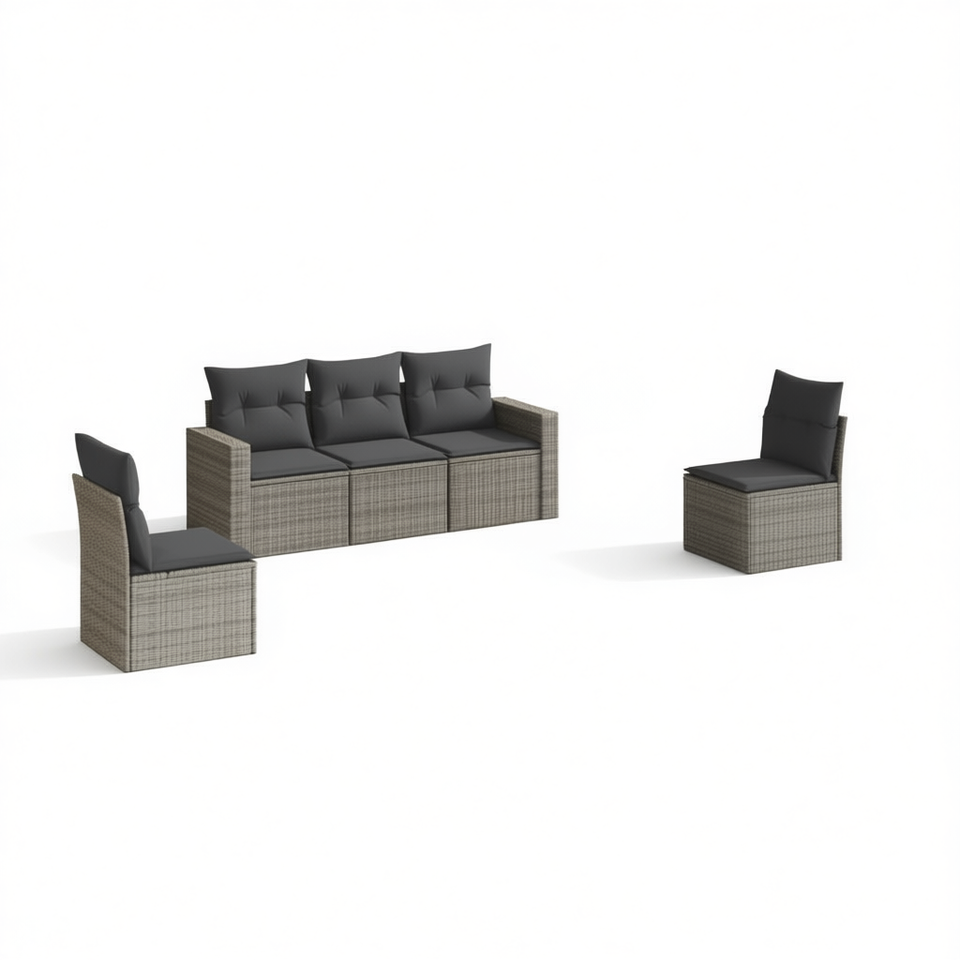 Ensemble de canapés de jardin en rotin gris avec coussins en mousse haute densité, mobilier d'extérieur au design contemporain, résistant à l'eau et aux UV