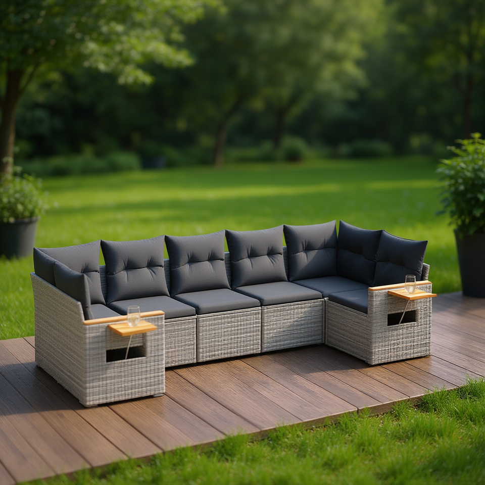 Ensemble de canapés de jardin en rotin gris 6 places, mobilier d'extérieur résistant aux intempéries, design contemporain