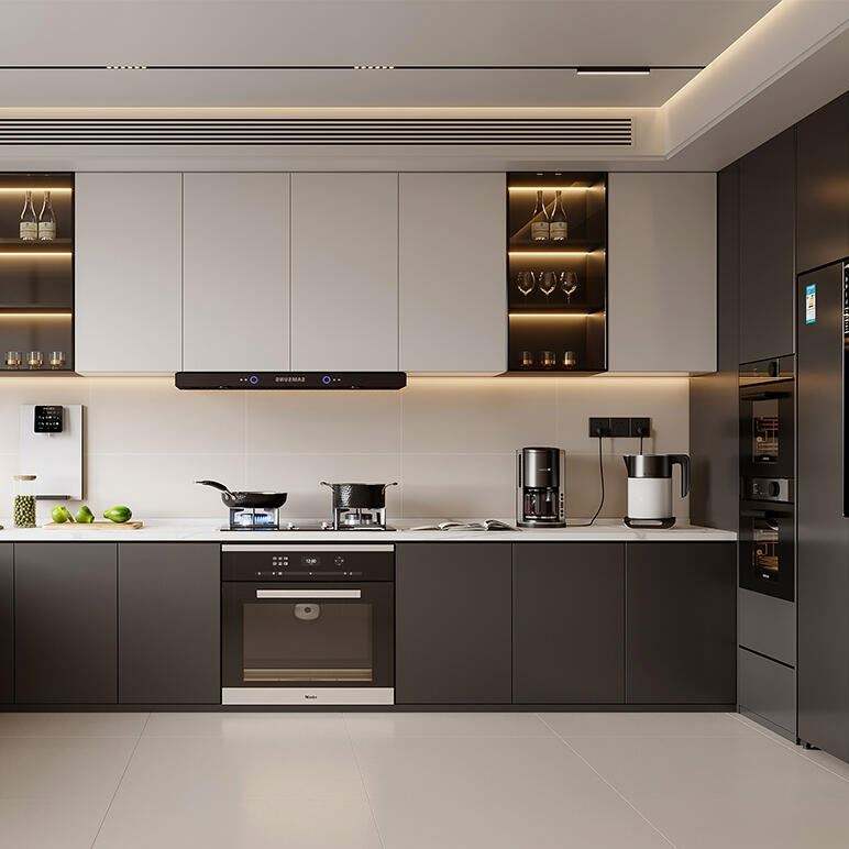 Ensemble d'armoires de cuisine modernes en forme de L en laque grise, armoire de garde-manger, matériau en bois, armoires de cuisine