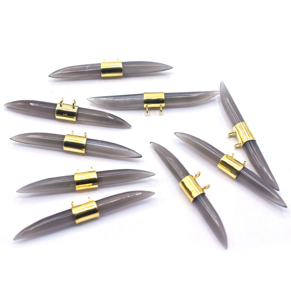 Product Name:Gray Moonstone Sword Shape Silver Bezel Gold Plated Pendant