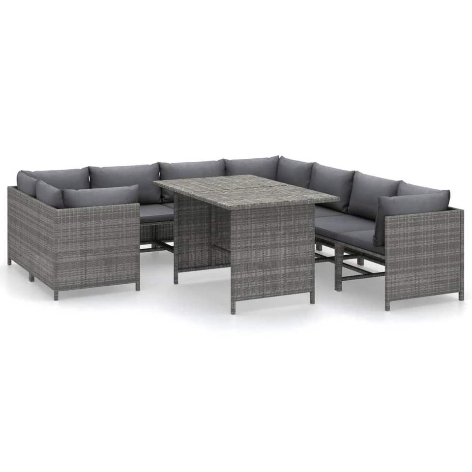 Ensemble de salon de jardin en rotin gris PE (polyéthylène) avec structure en acier thermolaqué, mobilier d'extérieur haut de gamme, modèle D0100HX1VCT