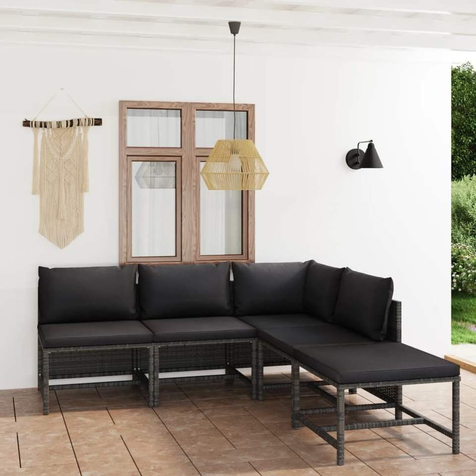 Ensemble de salon de jardin en rotin gris PE (polyéthylène) avec structure en acier thermolaqué, mobilier d'extérieur haut de gamme