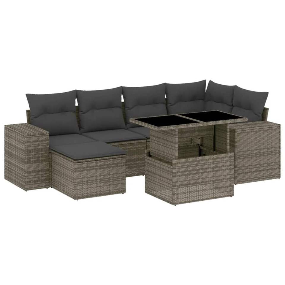 Ensemble de canapés de jardin en rotin gris PE avec structure en acier thermolaqué et verre trempé, mobilier d'extérieur haut de gamme