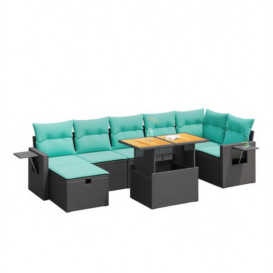 Ensemble de canapés de patio en polyrotin gris avec coussins, mobilier de jardin extérieur, design contemporain, imperméable