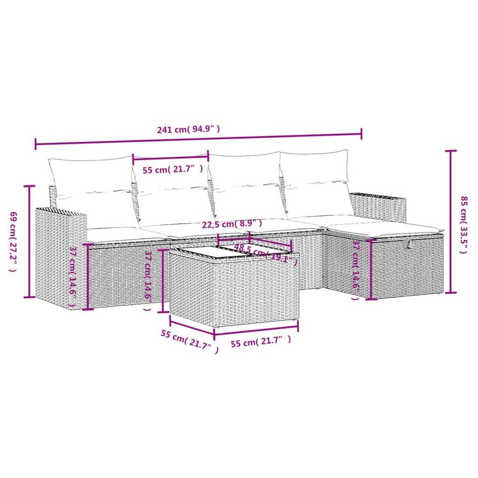 Ensemble de canapés de jardin en rotin poly gris avec acier enduit de poudre et verre trempé Mobilier d'extérieur de qualité supérieure